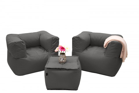 Sestava obsahuje: 2x MODULTEX kerti textil fotel (szürke-barna), 1x Kerti textil asztal/széklet MODULTEX (szürkésbarna)